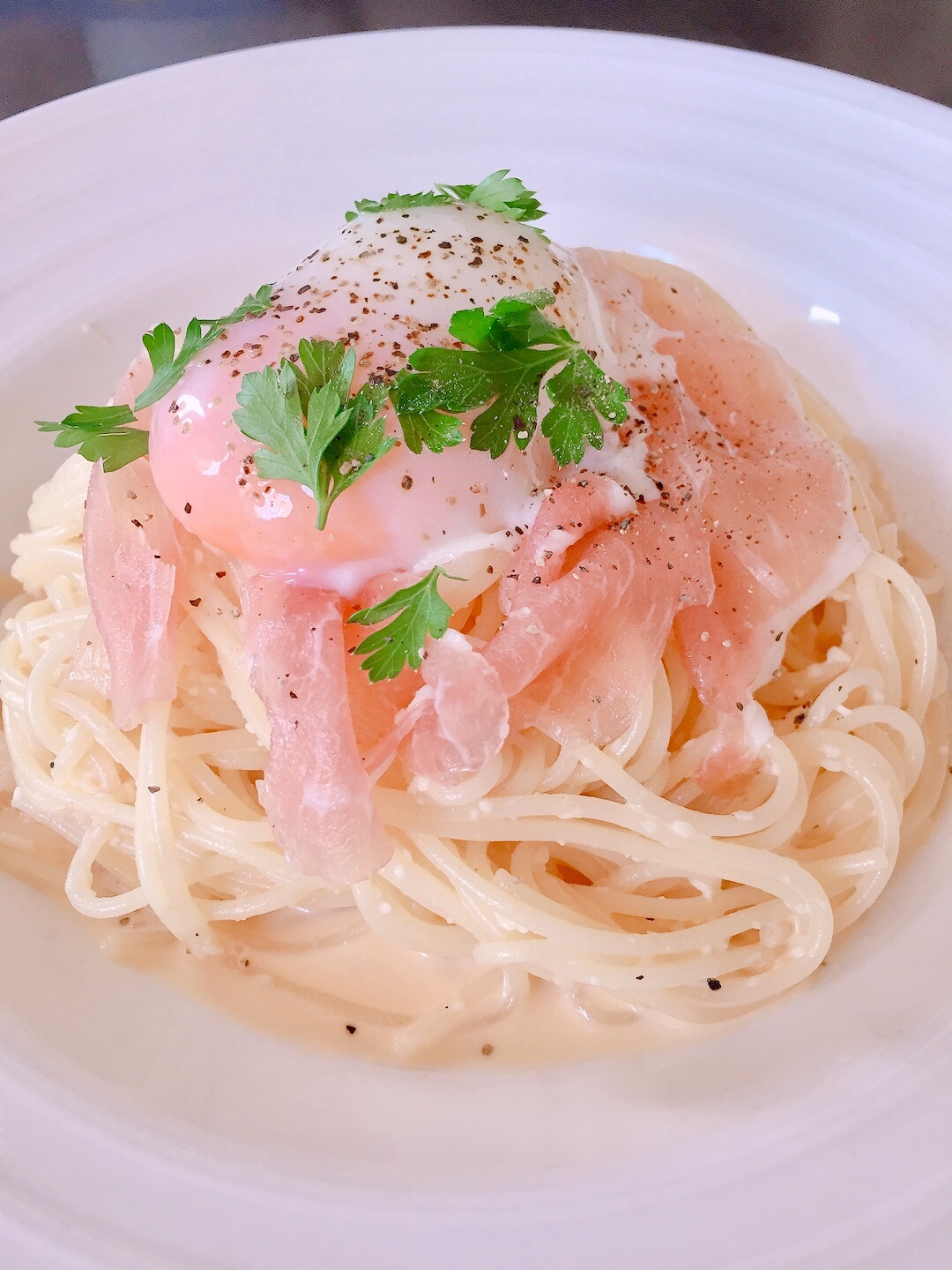 冷製生ハムカルボナーラ ベーコンを生ハムに替えて レシピ 作り方 By さくすず 楽天レシピ